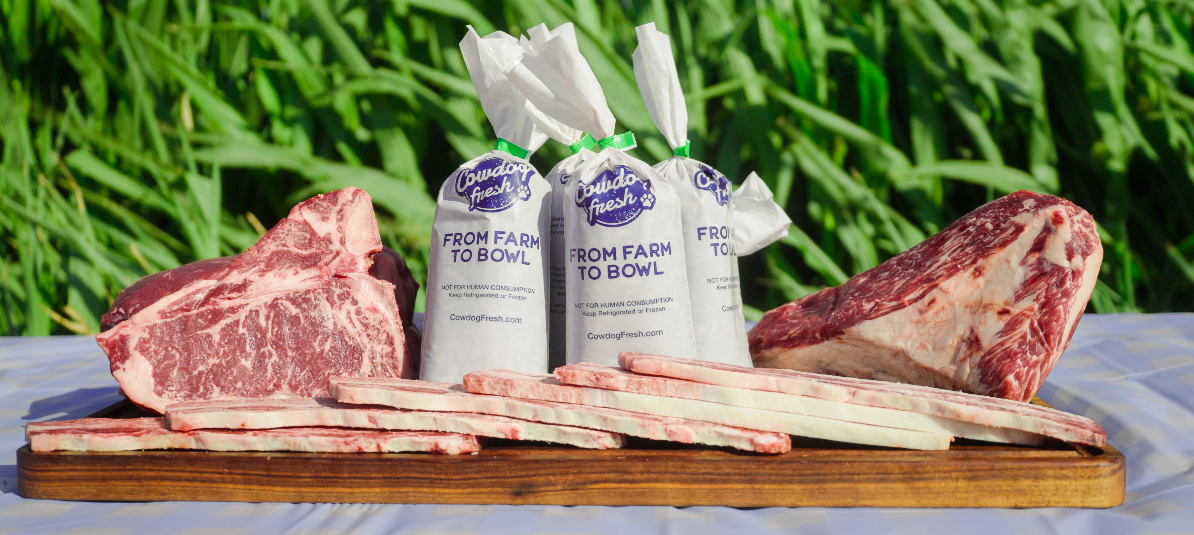With Cowdog Fresh you never have to wonder what you're feeding your furry friend. This super fuel is made from only cuts of beef, beef organs, and beef fat. Straight from our farm.